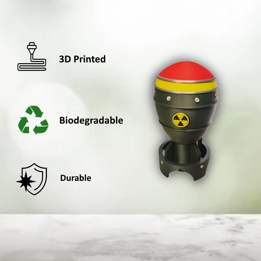 Want an interesting and unique deck box? Is your deck "Da' Bomb"? Check out this awesome option! This deck box is designed to look like an atom bomb from various forms of popular media as well as historic examples. It features enough room to hold a 100+ card deck, a screw capped compartment for your tokens or dice and it even has a slide rail style lid! The deck compartment measures over 2.5 inches deep by almost 3 inches wide and 3.75 inches tall. The bottom compartment measures almost 4 inches deep and over 2 inches wide to fit any dice! It makes the perfect gift for the explosive player at your table!